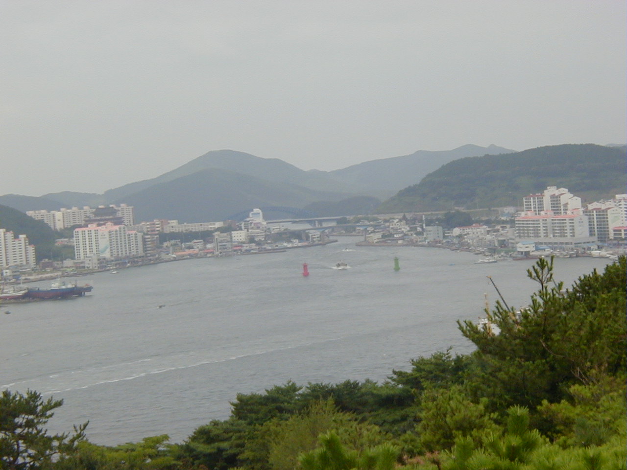 アジシからもらった地図を見ながら、一五分ぐらい西に進むと小さな湾に出た。湾の中には多数の漁船が停泊していた。そこを左に曲がり、右手に湾を、正面に南望山なる標識を見ながら、大きな道を登って行った。途中で、市民文化会館という大きな建物の前を通り過ぎて、二〇〇メートルくらい歩くと南望山の頂上の大きな広場に出た。